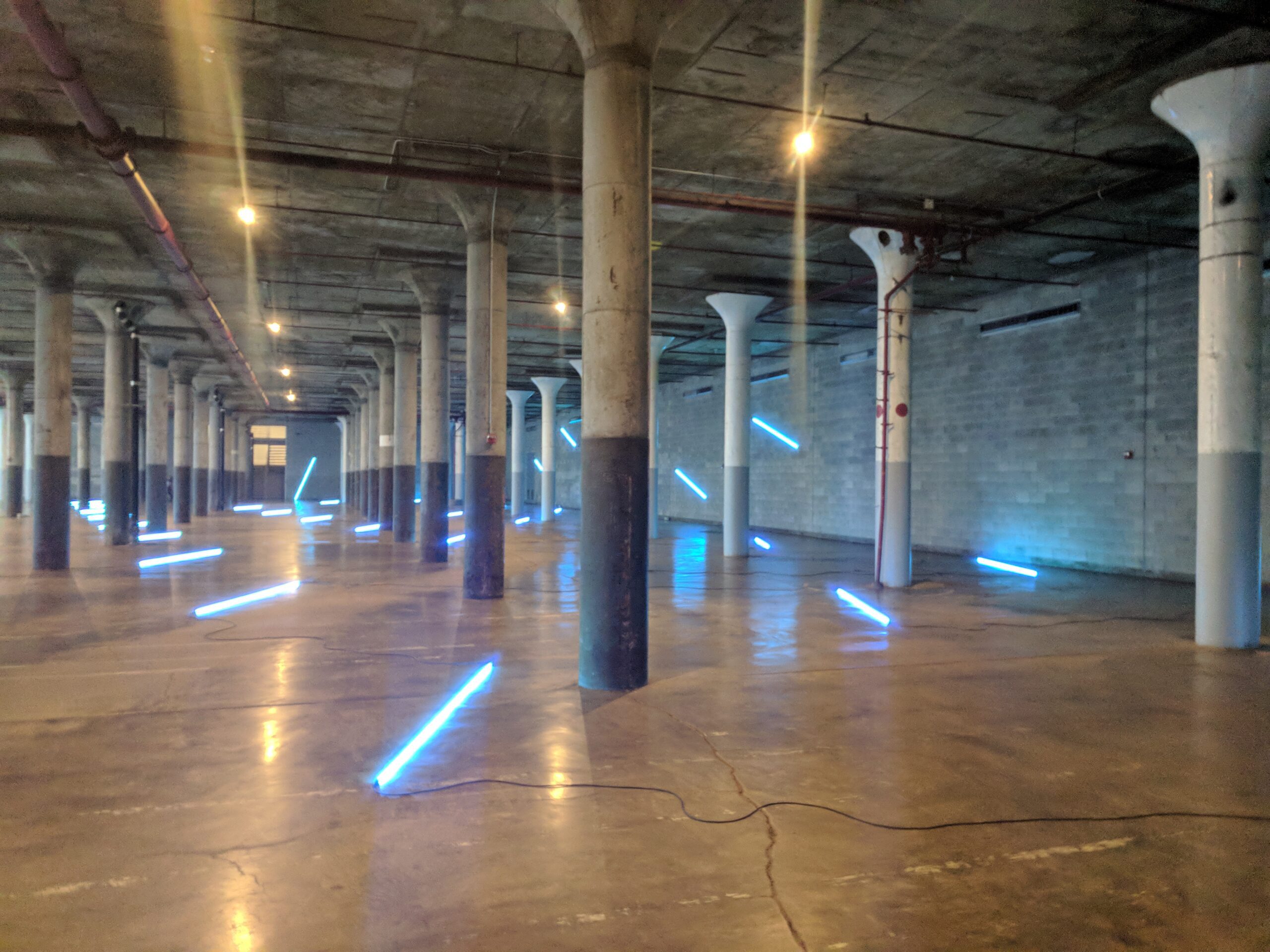 Installations in minimalist art can be seen primarily in light installations, where artists play with how light affects the space it is in. Using fluorescent light tubes, artists would emphasize the light more than the tube itself to create an effect.